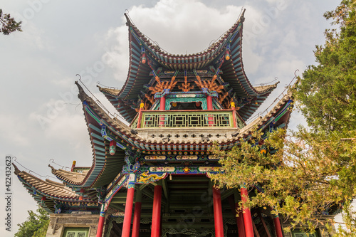 © Matyas Rehak, Naklejka premium Pavilion on White Pagoda Mountain in Lanzhou, Gansu Province, China