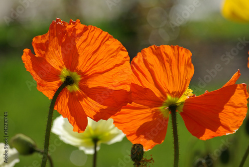 Fototapeta premium Pavots orange au soleil du matin au printemps au jardin