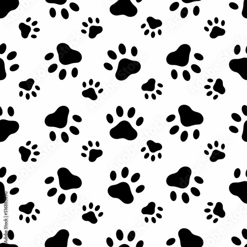 Obraz premium Paw print dog cat, seamless pattern. Vector illustration.