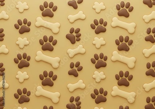 Obraz premium Paw Prints & Bones Pattern, Beige Background