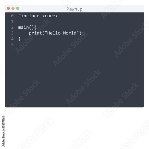 © vector_master, Fototapeta premium Pawn language Hello World program sample in editor window