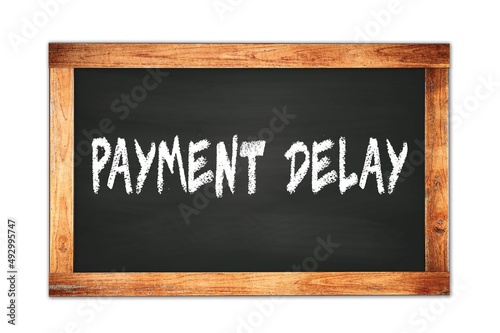 Fototapeta premium PAYMENT DELAY text written on wooden frame school blackboard.