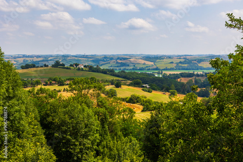 Fototapeta premium Paysage agricole de collines, de haies et de forêts de la vallée de la Lèze...