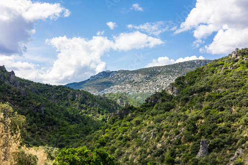 Naklejka premium Paysage autour du sentier de randonnée des Fenestrettes à Saint-Guilhem-le-Désert (Occitanie, France)