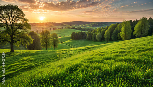 © SolarisKG, Naklejka premium Paysage de campagne au lever du soleil