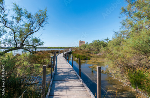 © PhotoLoren, Naklejka premium Paysage de la Petite Camargue, avec au loin, la tour Carbonnière, Gard, France
