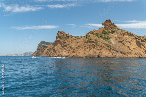 © Bernard, Fototapeta premium Paysage en bord de mer avec les falaises bordant les calanques entre Marseille et Cassis dans le Sud de la France, lieu privilégié de vacances et de voyage