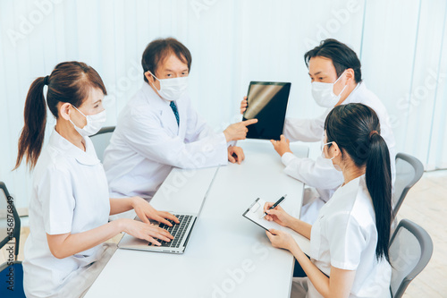 Fototapeta premium 医療現場・カンファレンス(マスク・タブレットPC・画面)