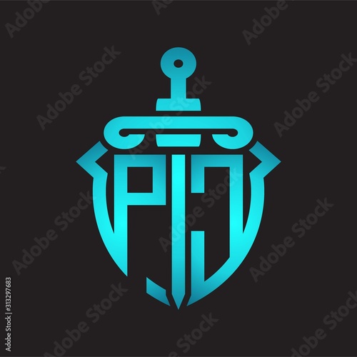 Obraz premium PC Logo monogram with sword and shield combination isolated blue colors gradient