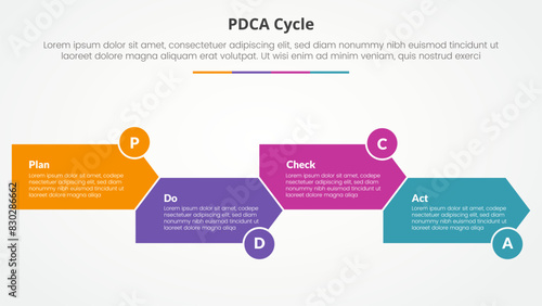 © fatmawati, Fototapeta premium PDCA plan do check act framework infographic concept for slide presentation with arrow shape right direction up and down with 4 point list with flat style