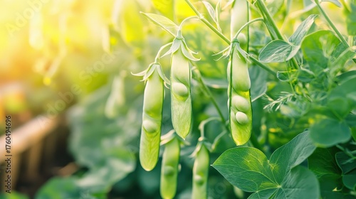 © MyStockz, Obraz premium Pea plants with pods in sunlight growing in garden