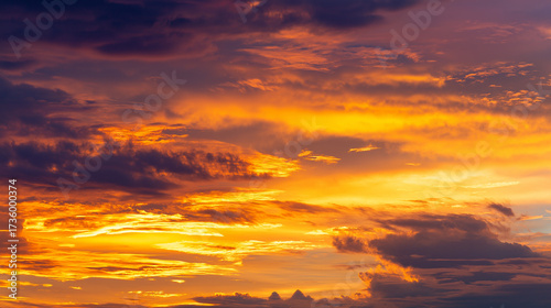 Obraz premium peace. A breathtaking sunset sky panorama with vibrant warm hues and glowing...