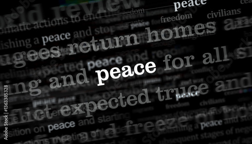 © Skórzewiak, Obraz premium Peace and war is end headline titles media 3d illustration