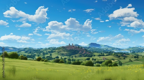 © vectorwin, Fototapeta premium peace blue sky hills