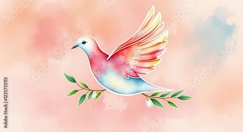 Fototapeta premium Peace Dove Icon With Leaf watercolor painting