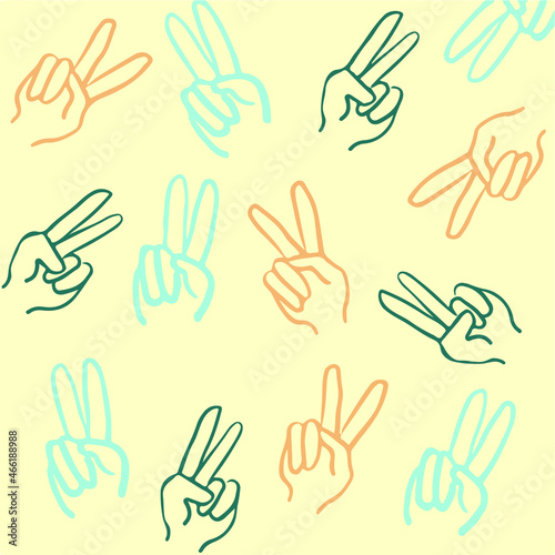 © FriskySloths, Obraz premium Peace Hand Gesture Pattern Background. Vector Illustration.