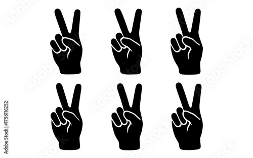 Fototapeta premium Peace hand gesture pattern with six silhouette icons on white background