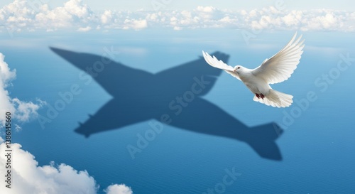 Obraz premium Peace or Power: Dove's Shadow Reveals Hidden Fighter Jet Imagery on Sky Backdrop