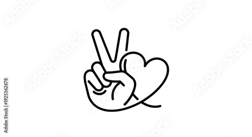 Fototapeta premium Peace Sign Hand with Heart Symbol, Love and Harmony Concept, Minimalist Line Art