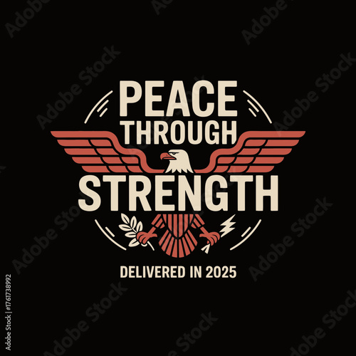 © Lungani, Naklejka premium Peace Through Strength Eagle Vector T-Shirt Design