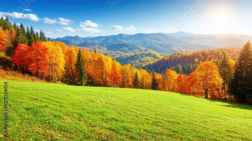 © Khritthithat, Fototapeta premium Peaceful Autumn Landscape with Rolling Hills