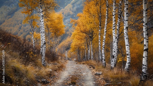 Fototapeta premium Peaceful autumn vibe in the mountains with warm tones and soft natural light.
