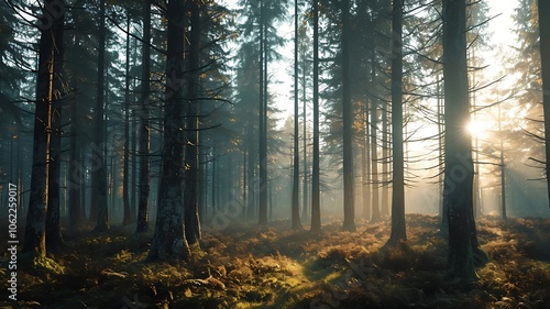 © Huzaifa, Obraz premium Peaceful Bamboo Forest Capturing Tranquility and Dense Green Atmosphere