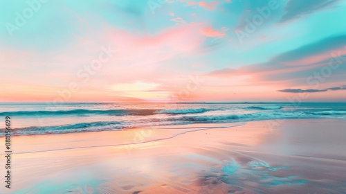 © Zie, Obraz premium Peaceful Beach Sunset with Pastel Hues
