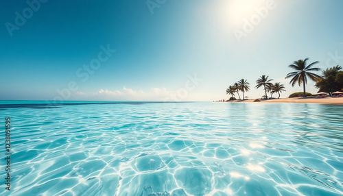 Fototapeta premium Peaceful Beach with Turquoise Water and Palm Trees