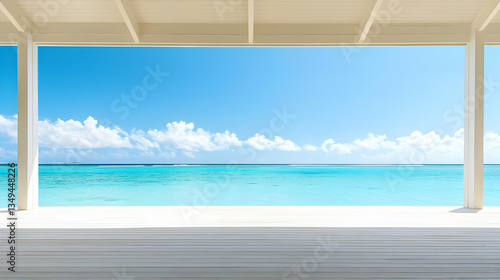 © julio, Fototapeta premium Peaceful Beachfront Pier Under Sunny Sky
