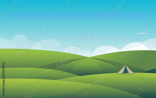 © BackgroundStudio, Obraz premium Peaceful Campsite on Rolling Hills