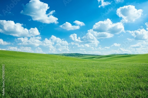 Fototapeta premium peaceful country field with rolling hills and a clear blue sky, Generative AI