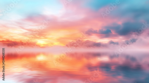 Obraz premium Peaceful Dawn on a River with Rising Fog and Soft Colors