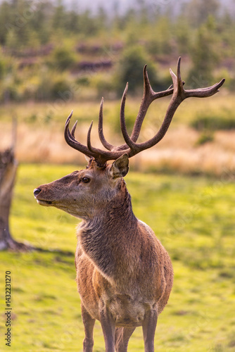 © Why_Not, Fototapeta premium Peaceful deer grazing freely in sunlit meadows and forests. Close-up details of their calm, wild life surrounded by nature, under a clear sky in an untouched natural paradise