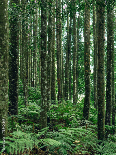 © Balnyes Visuals, Fototapeta premium Peaceful forest interior with lush green foliage for travel, hiking, and outdoor