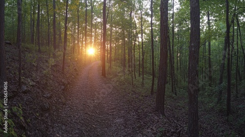 © Aashutosh Pandit, Fototapeta premium peaceful forest path at sunset