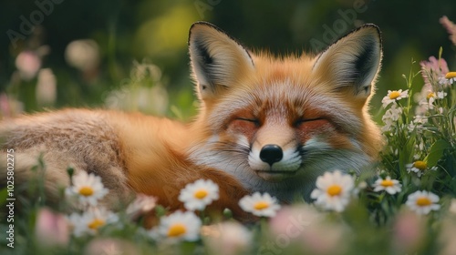 © Sandu, Obraz premium Peaceful Fox in Wildflower Meadow