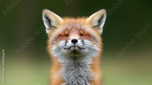 © kvladimirv, Fototapeta premium Peaceful Fox Portrait with Closed Eyes and Soft Fur Against a Green Background