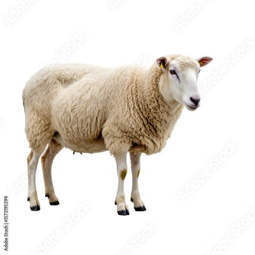 Obraz premium Peaceful Grazing Sheep in Regenerative Farm Scene on White Background