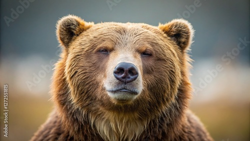 © Four888, Fototapeta premium Peaceful Grizzly Bear, Eyes Closed, Minimalist Nature Photography