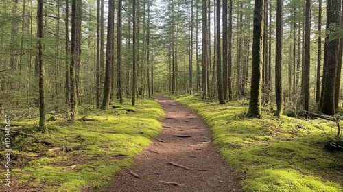 Obraz premium Peaceful Hiking Trail Through Lush Green Forest in Nature Scene