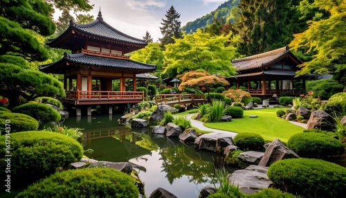Fototapeta premium Peaceful Japanese garden with serene water features