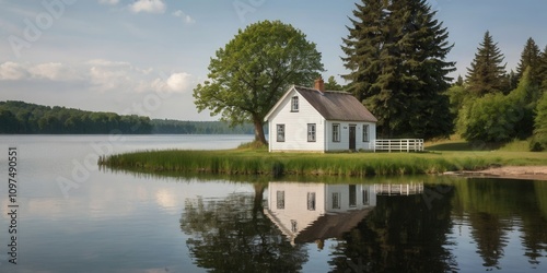 Obraz premium Peaceful Lakefront Cottage.