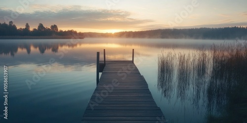 © Alexandr Efimov, Obraz premium Peaceful Lakeside Sunset