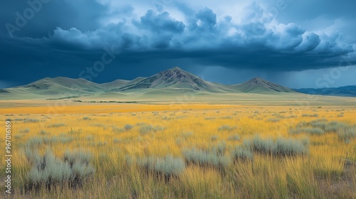 © FrankBoston, Fototapeta premium Peaceful landscape in spring with flowers blossoming in a meadow