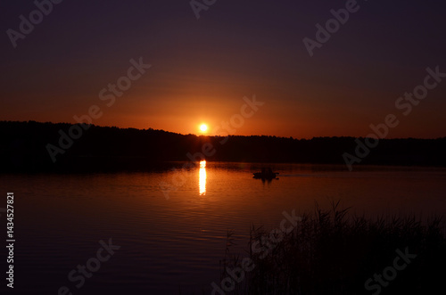 © Viktoriia Kolosova, Obraz premium peaceful landscape with a boat on the lake at dusk