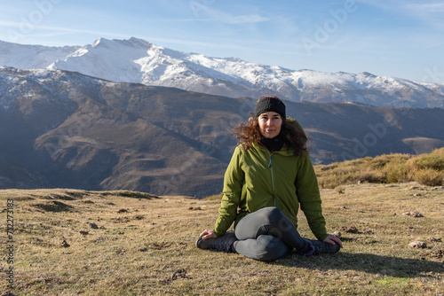 © Alejandro, Naklejka premium Peaceful Meditation in Baddha Konasana with Mountain View