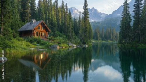 © Kopgz-41, Fototapeta premium Peaceful Mountain Retreat: A Tranquil Escape in Nature