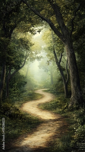 © Jannatul, Naklejka premium peaceful nature scene with sunlit forest and green landscape