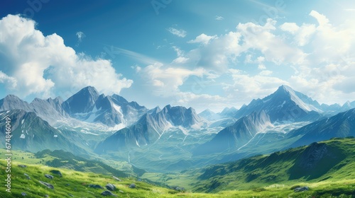 Fototapeta premium peaceful nature sky summer landscape illustration cloud beautiful, idyllic horizon, color mountain peaceful nature sky summer landscape